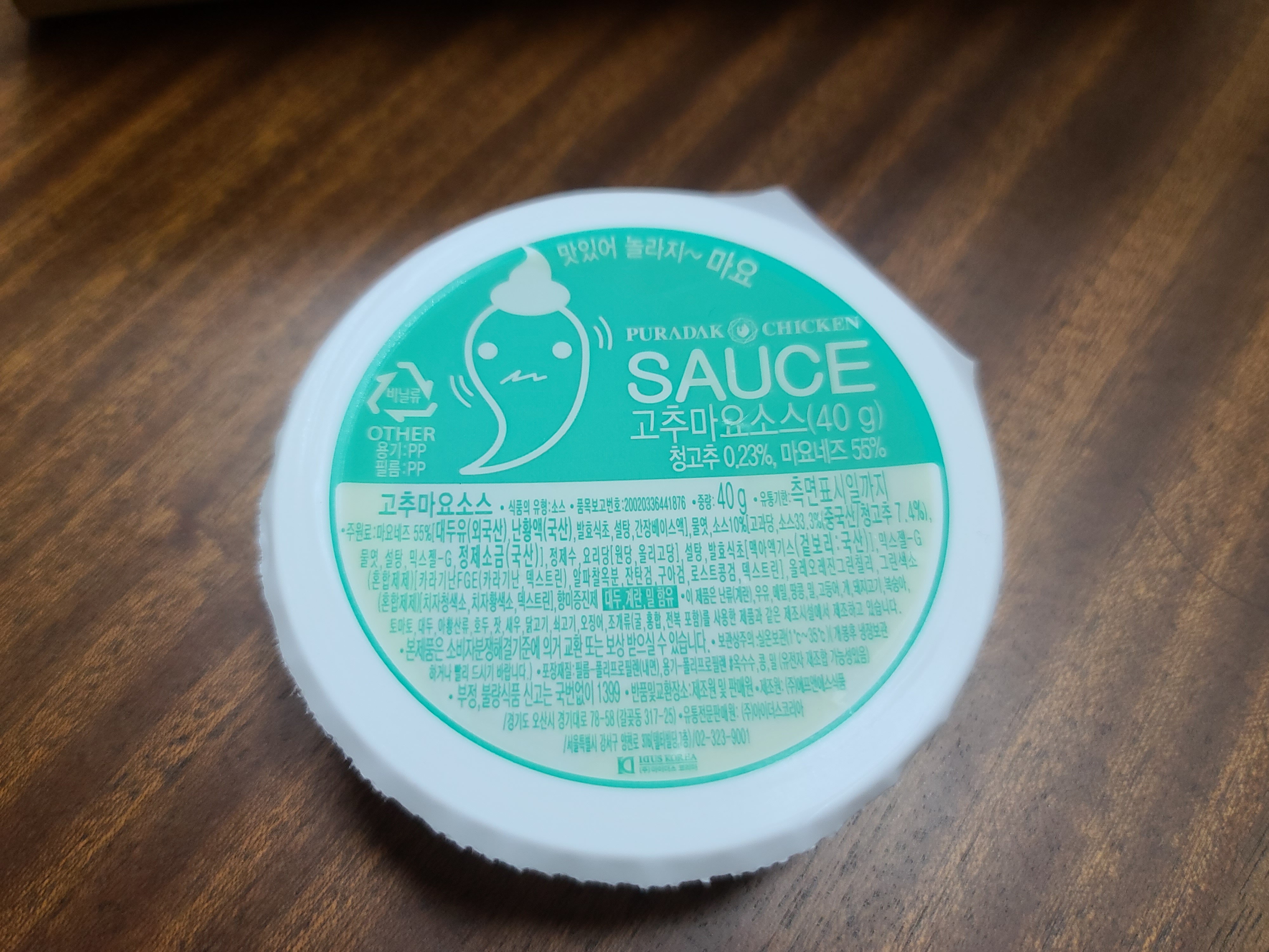 고추 마요 치킨에 들어가는 고추 마요 소스가 들어있습니다.