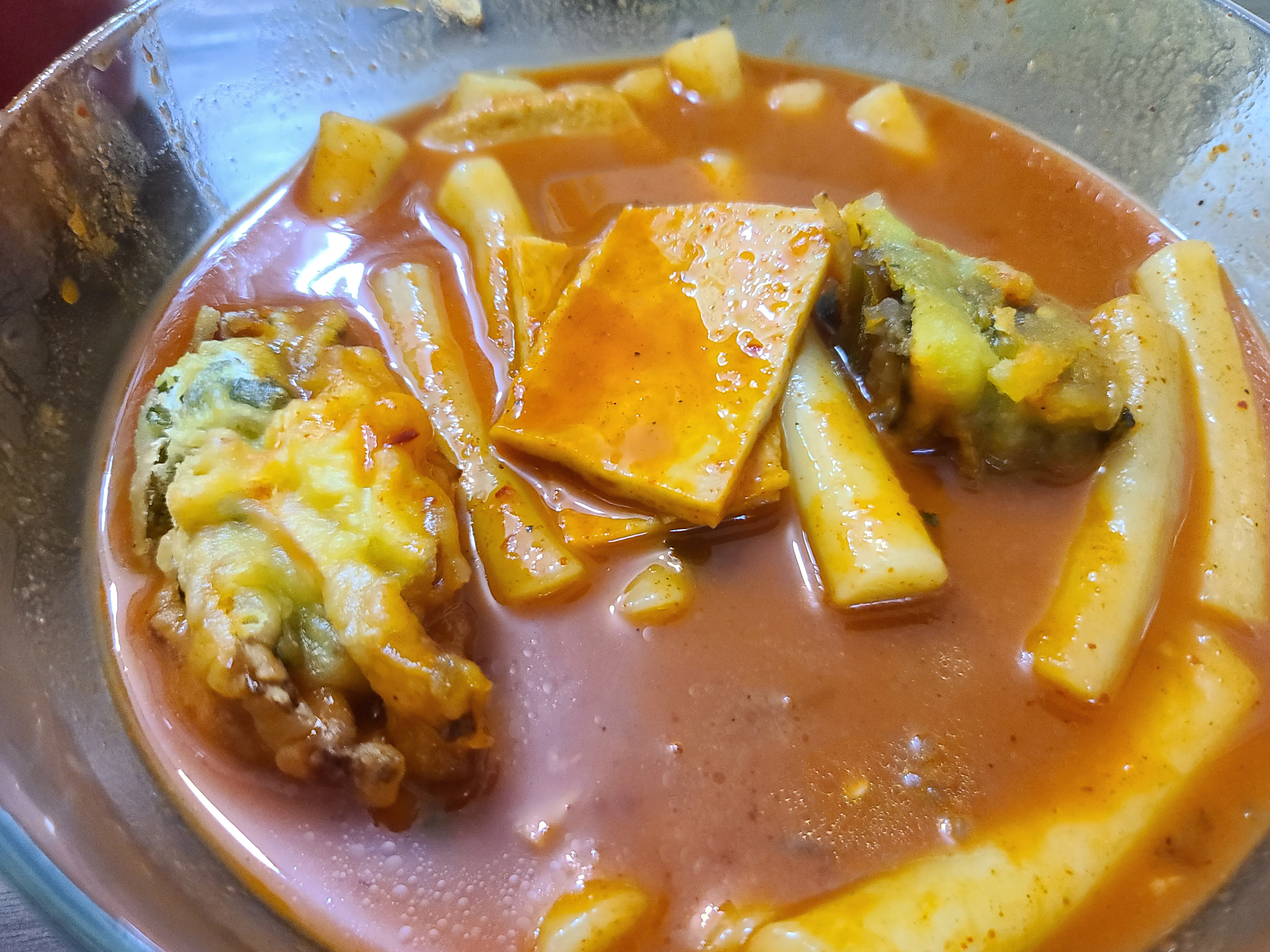 튀김옷에 떡볶이 국물이 스며들면서