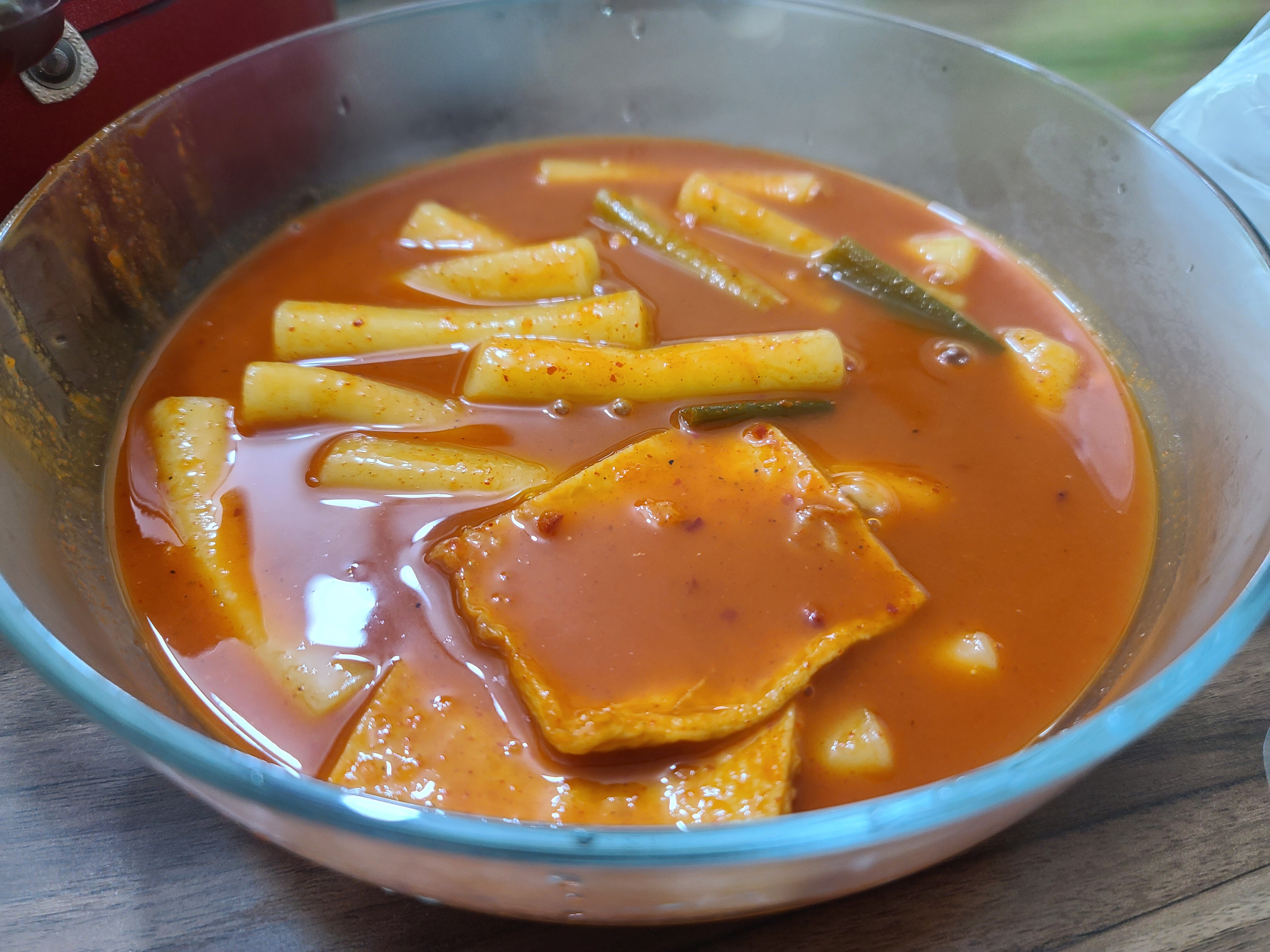 여러 가지 재료로 정성껏 만든 떡볶이 국물의 맛이