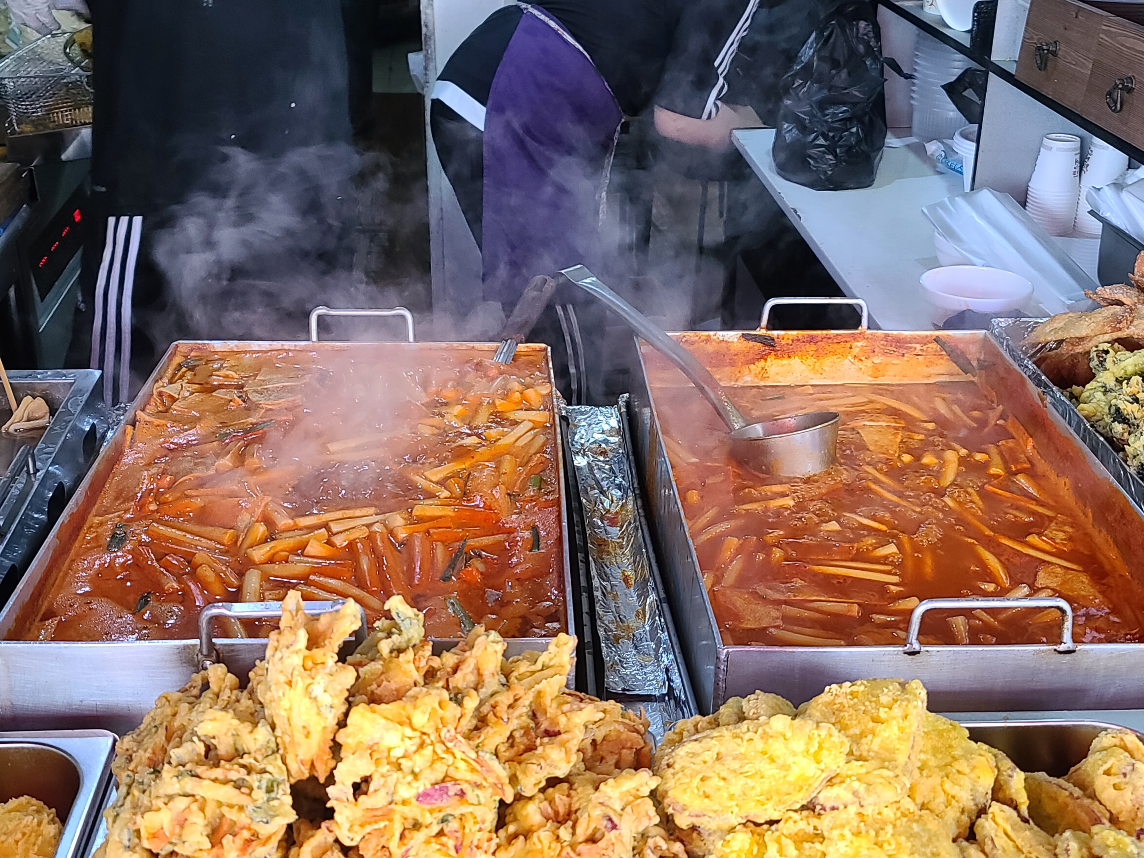 떡볶이를 담고 계시는 사장님과