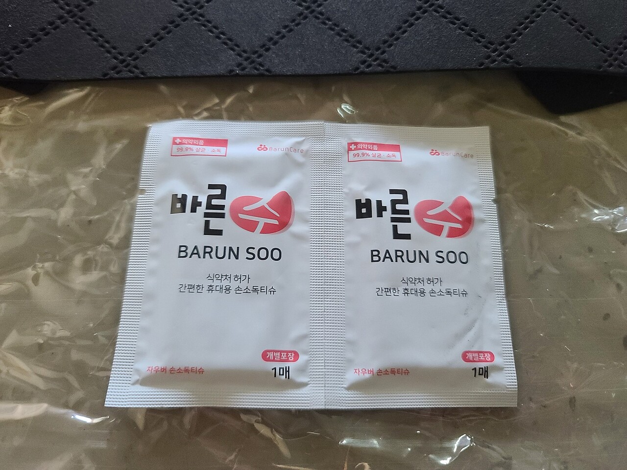 부착면을 깨끗하게 정리하고 유분감을 없앨 수 있는 소독 티슈가 동봉되어 있습니다.
