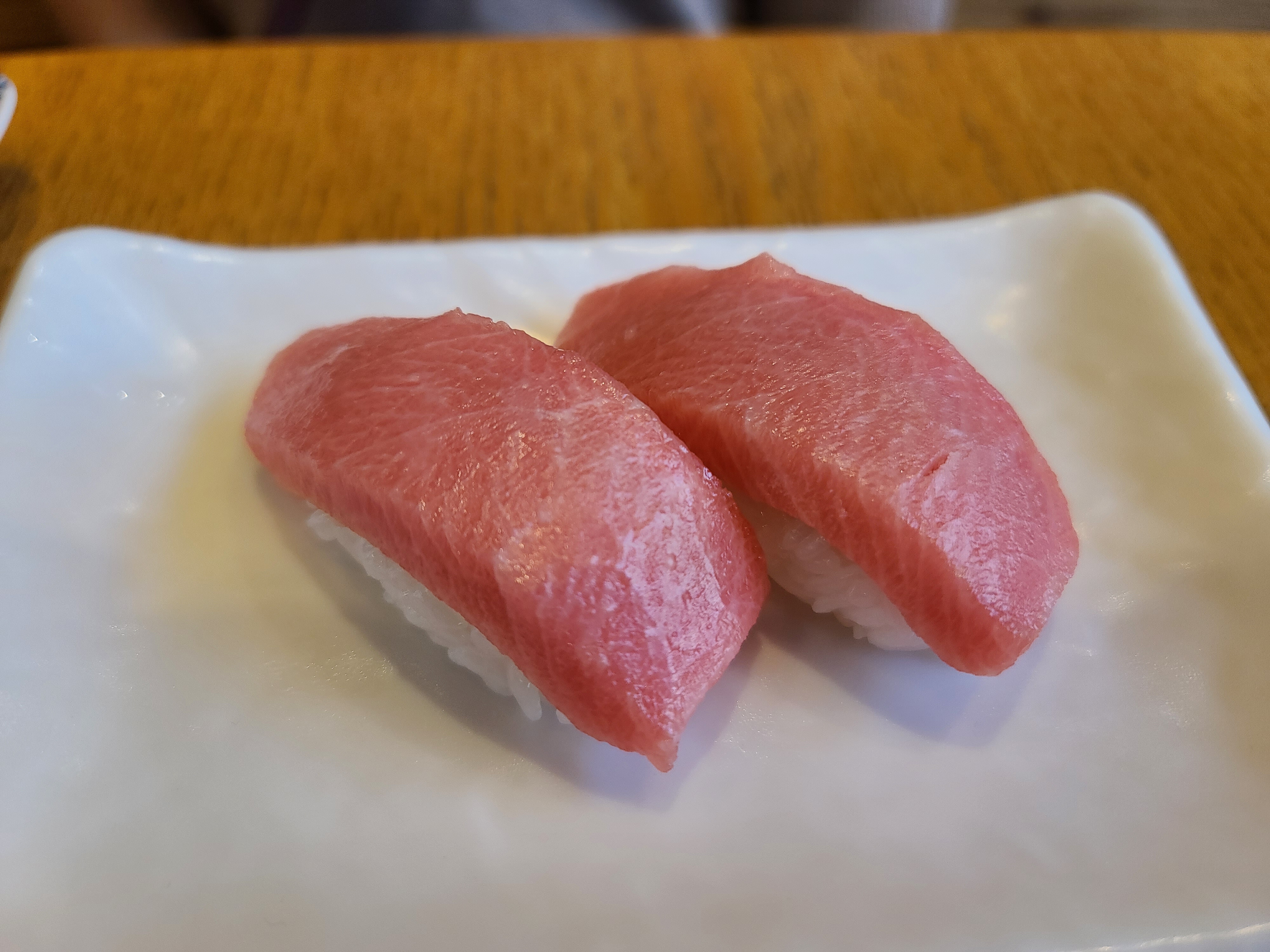 기꾸 초밥의 시그니처 메뉴라고 하는데 참치의 기름진 맛이 입에서 사르르 녹았습니다.