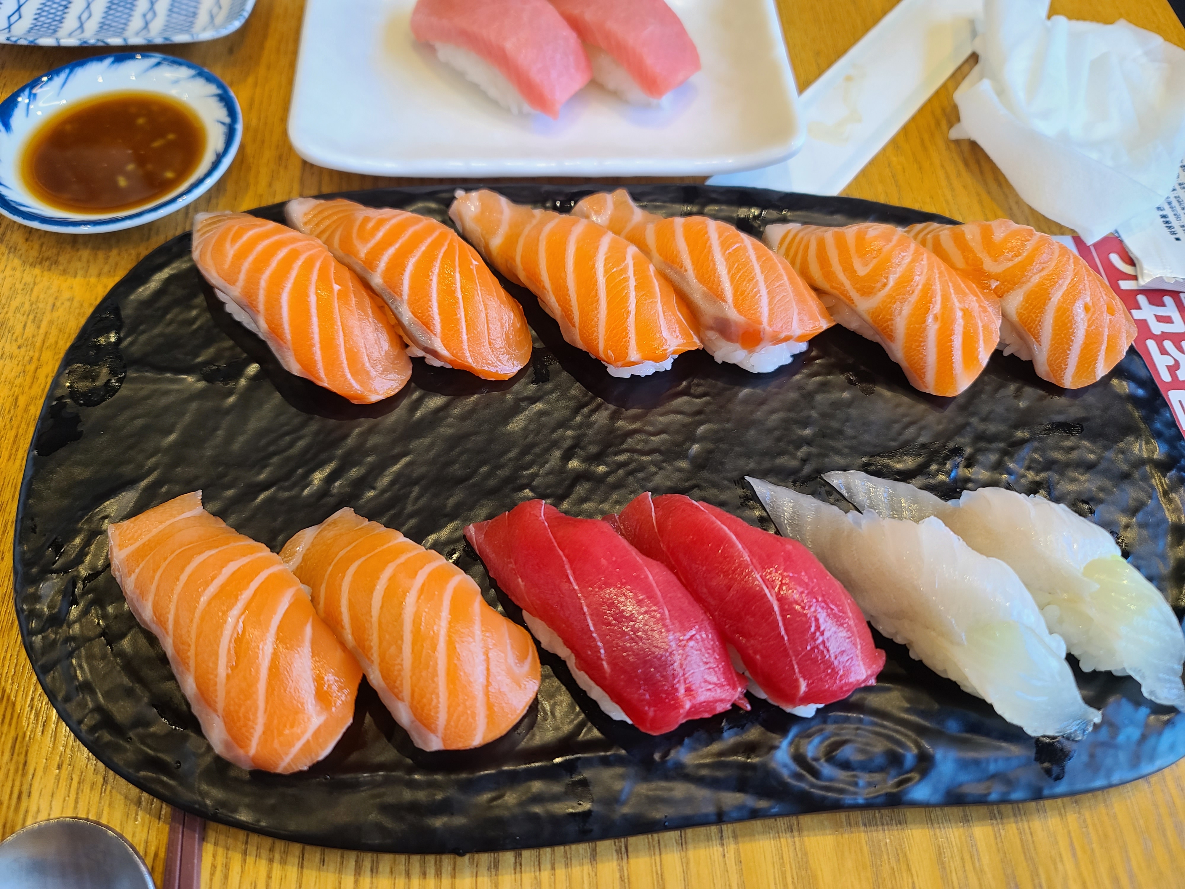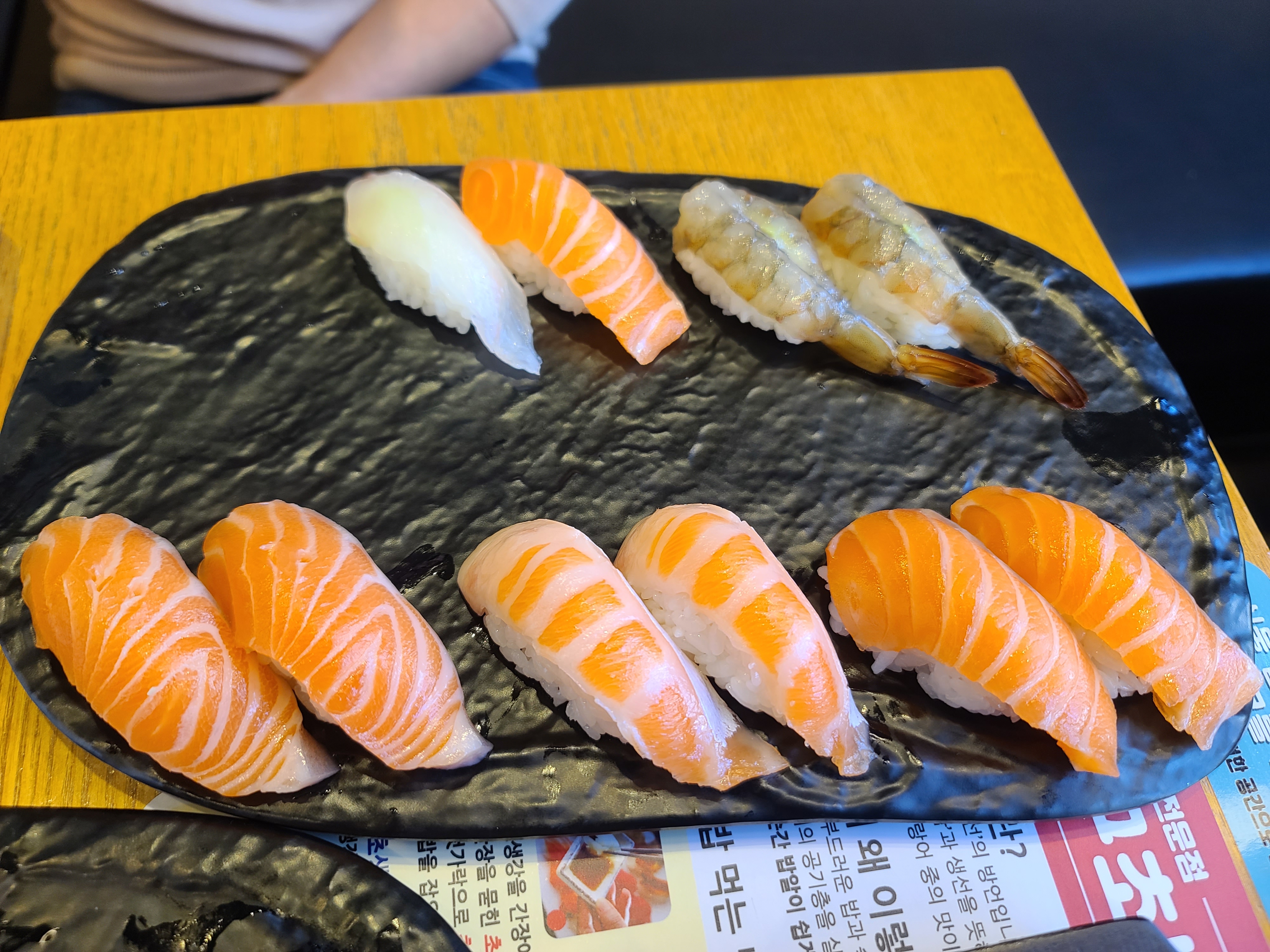 어머니와 저는 연어를 좋아해서 연어초밥이 많은 구성이 참 좋습니다.