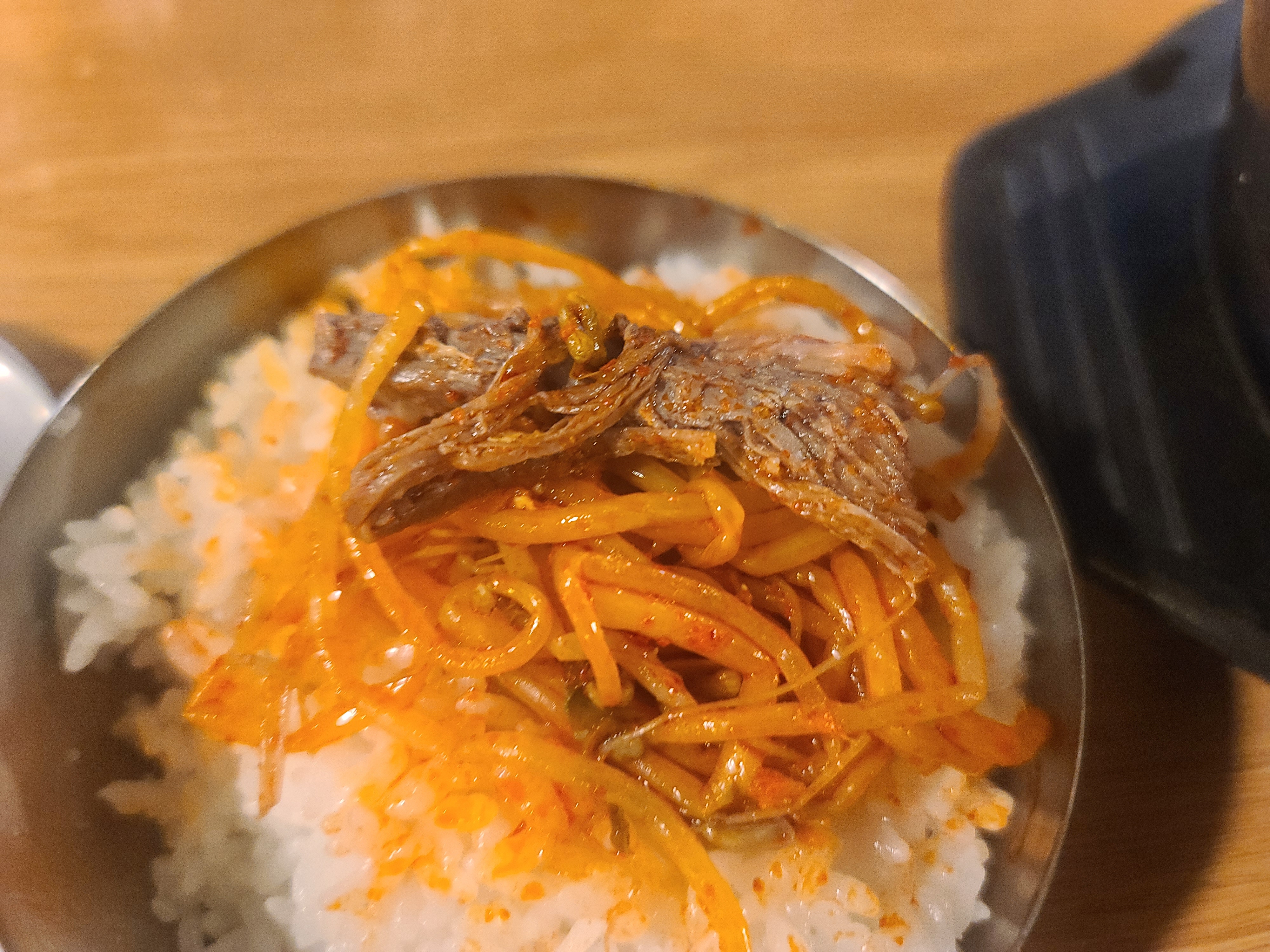 고기 숙주와 함께 밥에 올려 먹어봅니다.
